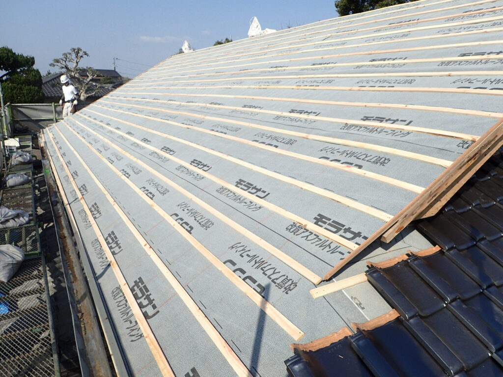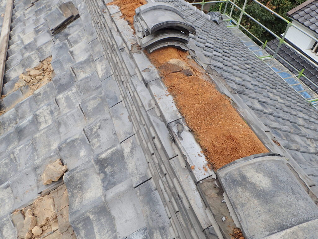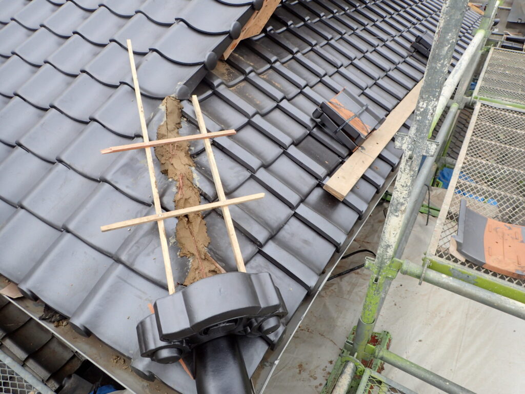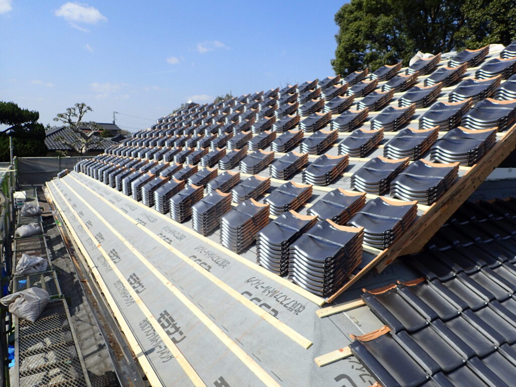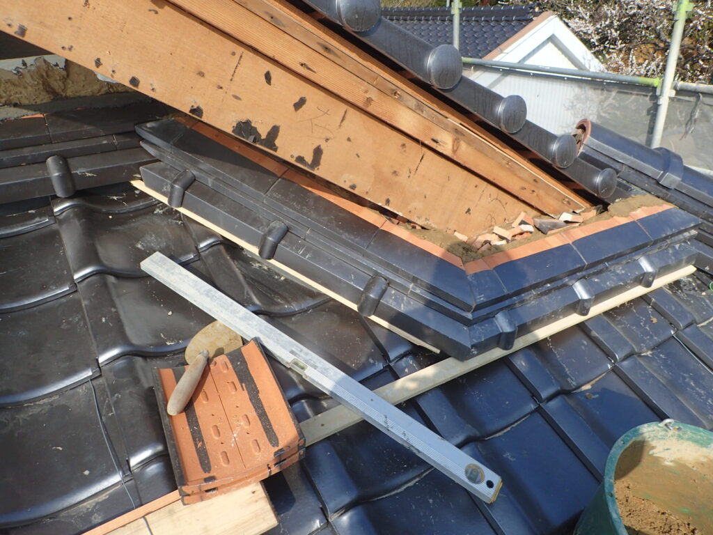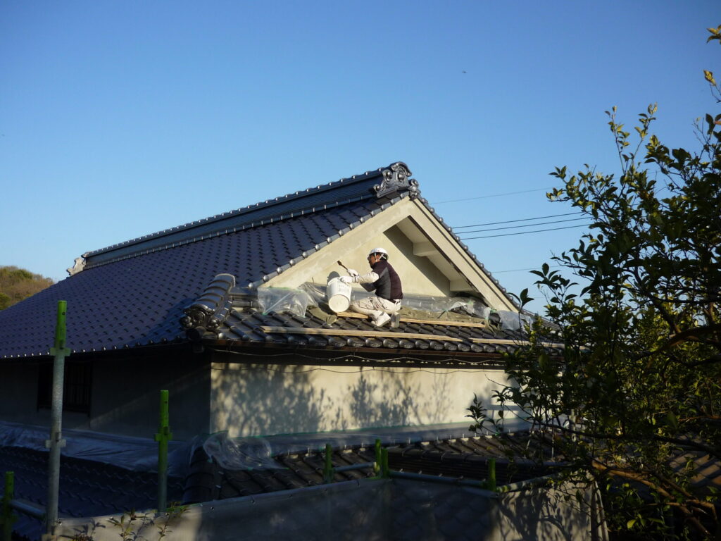 屋根瓦と漆喰壁を再生しました。