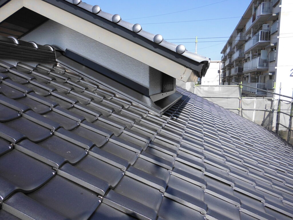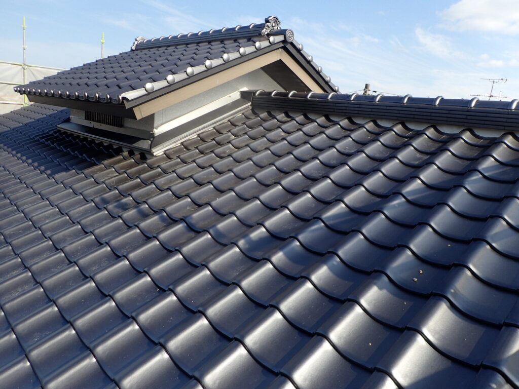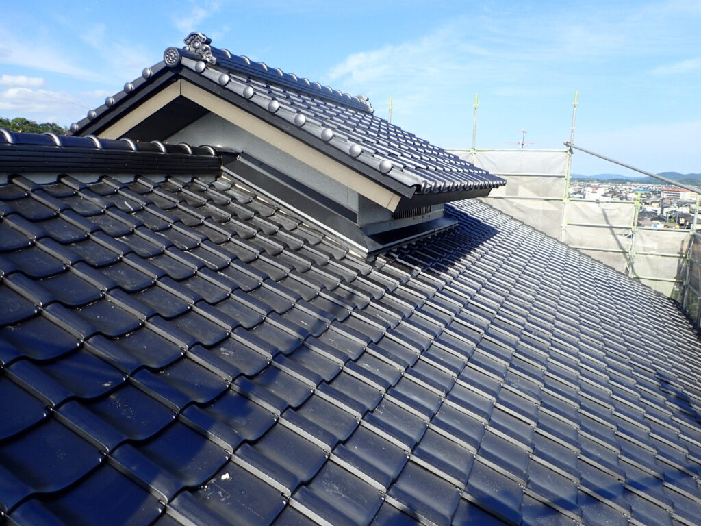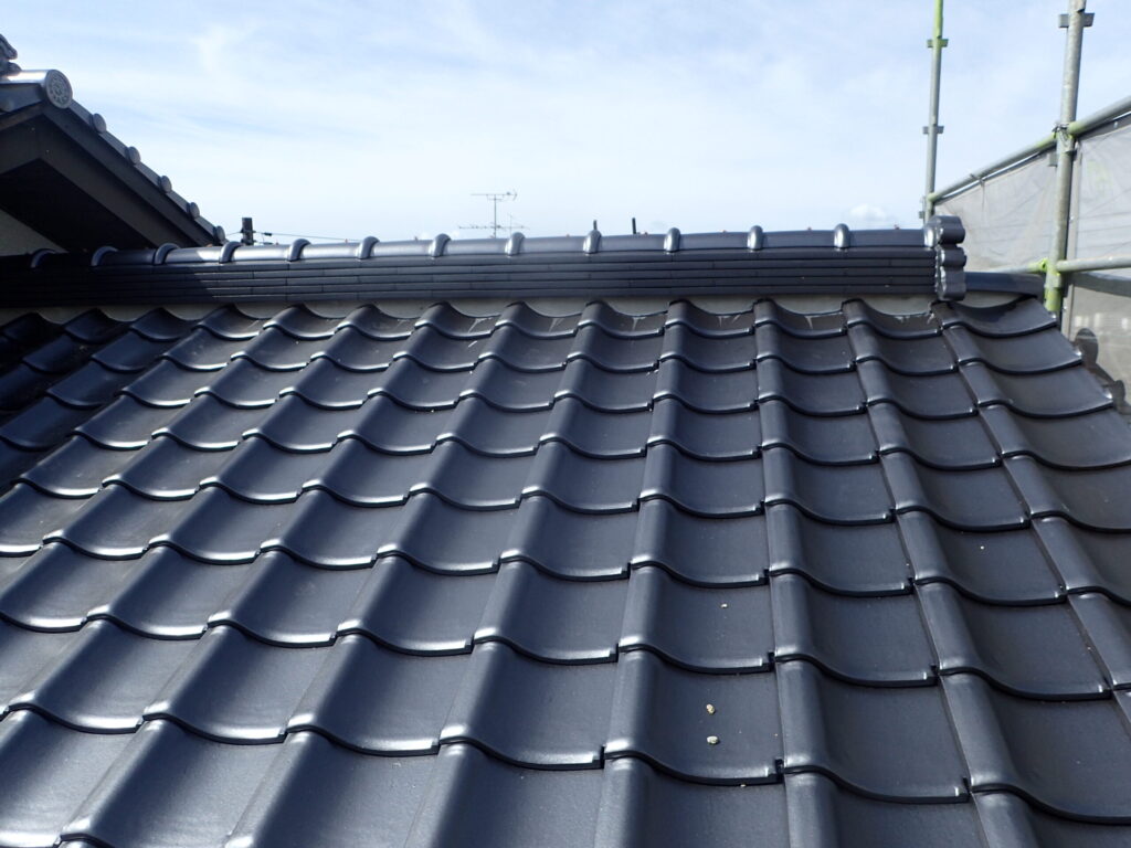 セメント瓦を石州瓦(釉薬瓦)に葺き替えました。