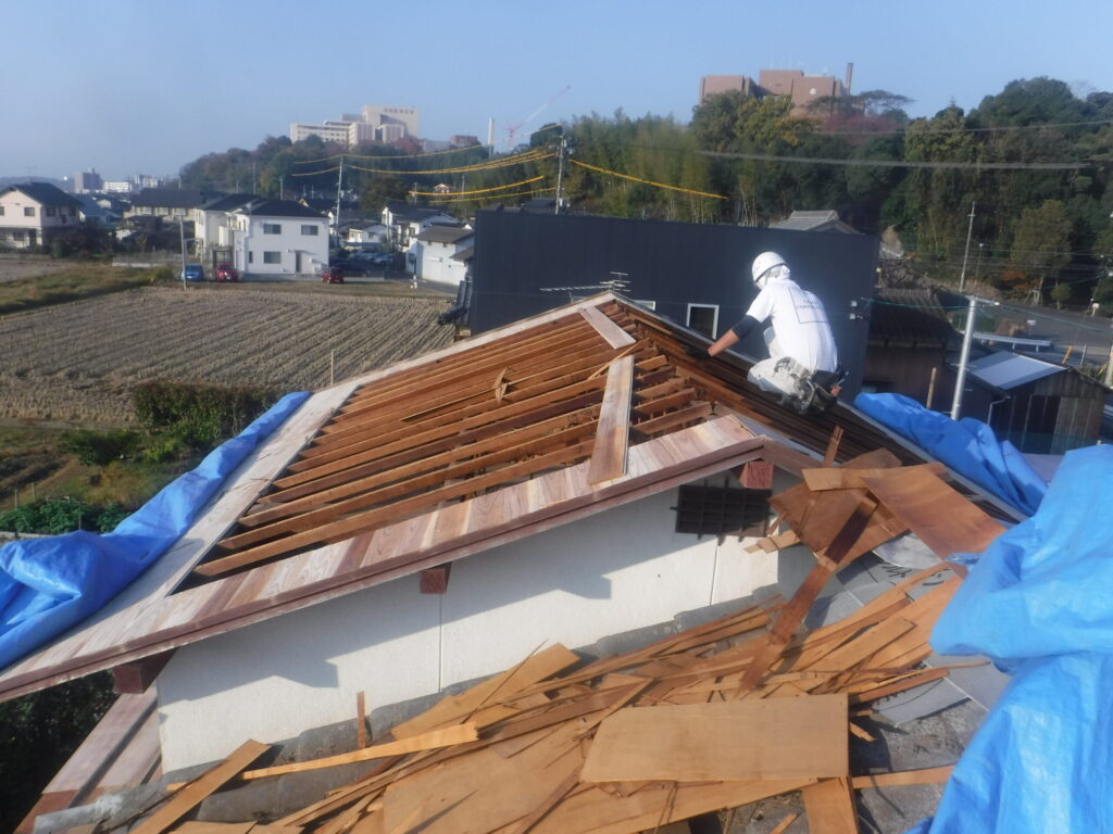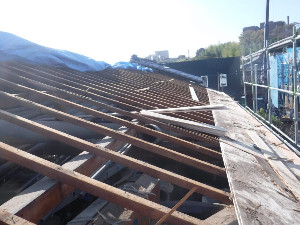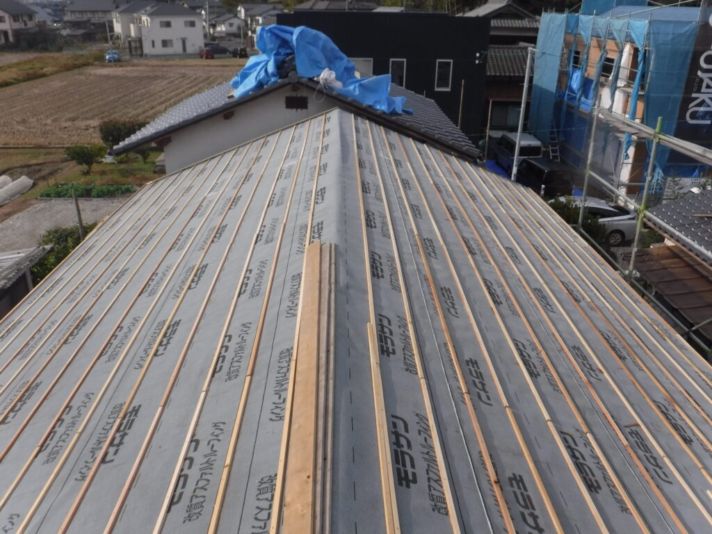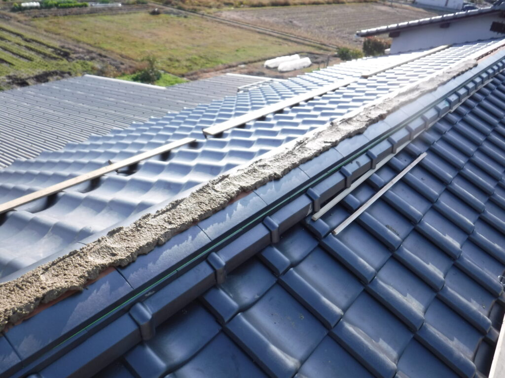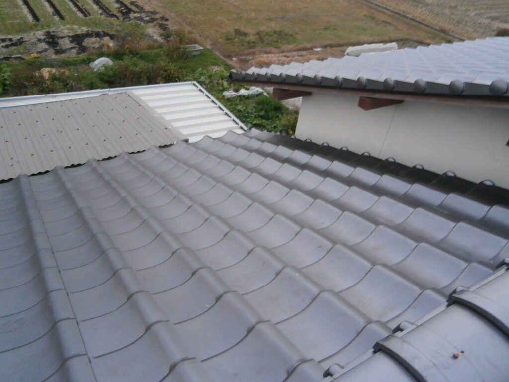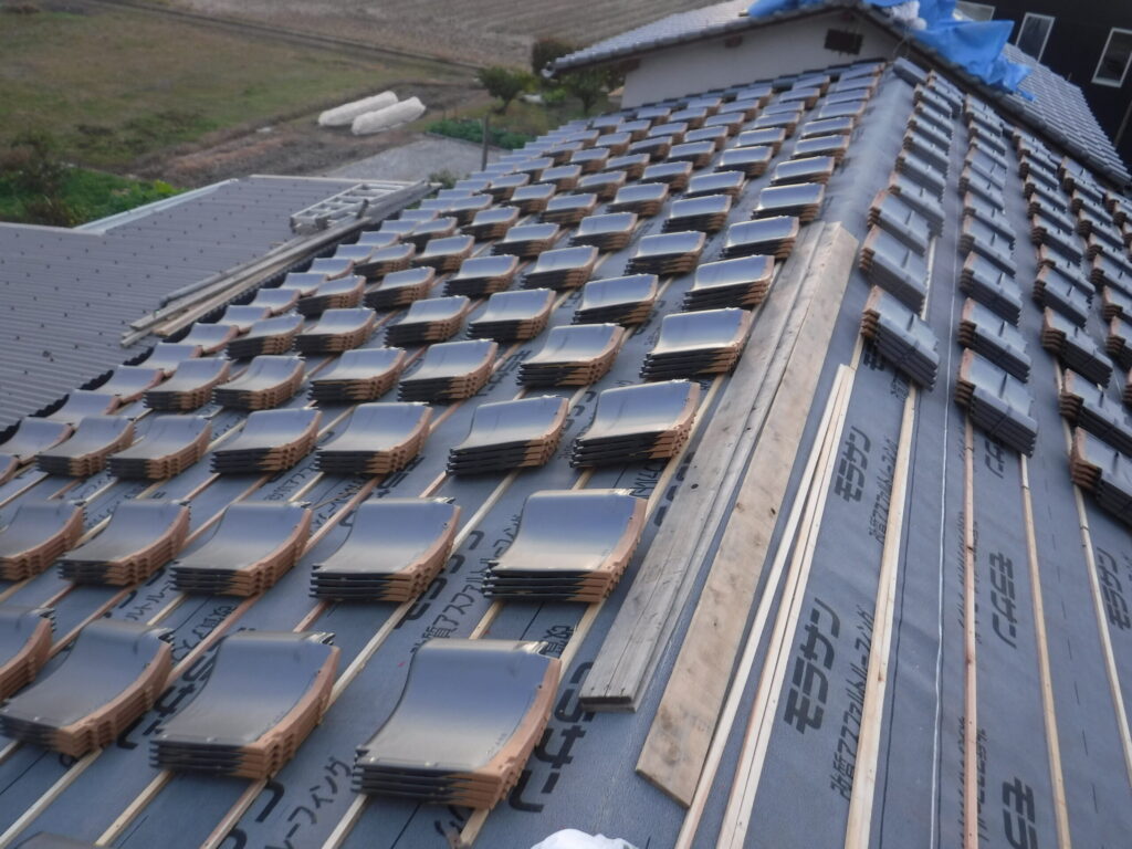 セメント瓦を石州瓦(釉薬瓦)に葺き替えました。